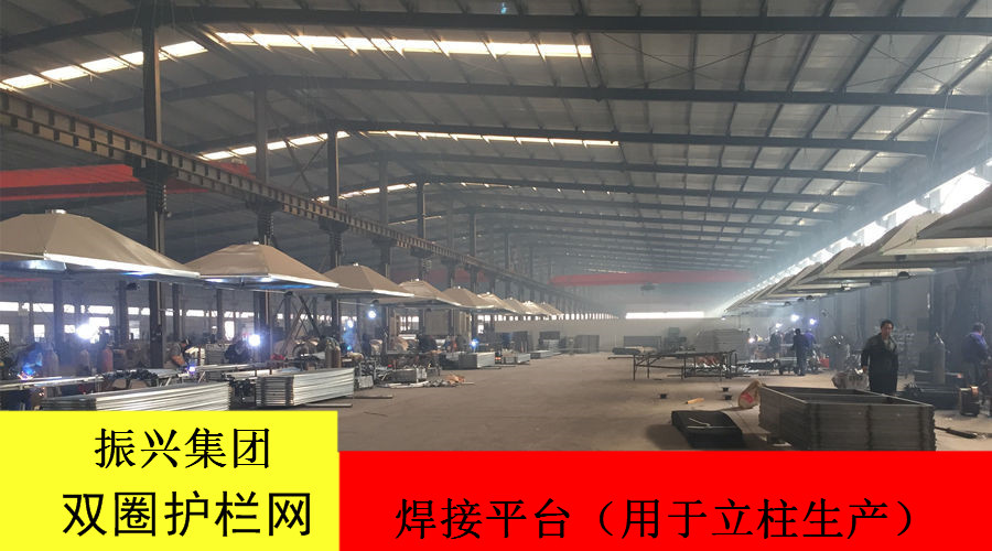 双圈护栏网又称‘双圈隔离栅’,它采用2.5mm冷拔丝后焊接而成,每个网孔的横丝都有一个弯弧,以增加强度,网片与立柱采用不锈钢卡子现场连接,护栏立柱采用焊接钢管制作加盖柱帽,立柱及斜撑基础为现浇筑混凝土,双圈隔离栅的立柱及网片采用先镀锌再浸塑的不腐处理措施,焊接网隔离栅不腐、不老化、不怕晒,阻燃,美观。使用年限长,安装简便快捷等特点。