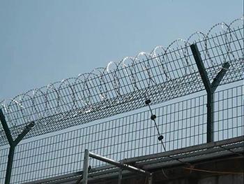 监狱护栏网又称作“Y型安全防御护网”和机场护栏网通用,是由V型支架立柱,加强型焊接片网,安全防盗连接件和热镀锌刀片刺笼组成强度和安全防御性级别很高。近年来,被广泛应用在监狱,军事基地等高安全场所。注:如果在监狱护栏网顶部加装刀片刺丝、刀片刺绳后又很好的增强了安全防护性能。采用电镀、热镀、喷塑、浸塑等防腐形式,具有很好的抗老化、抗晒、耐候等特点。其产品造型美观、花色多样,既起到围栏作用,又起到美化作用。由于具有安全性高、防攀爬能力好,网片连接方式采用特制SBS紧扣件,有效防止人为的破坏性拆卸,横向四道折弯加强筋,使网面强度显著增加。